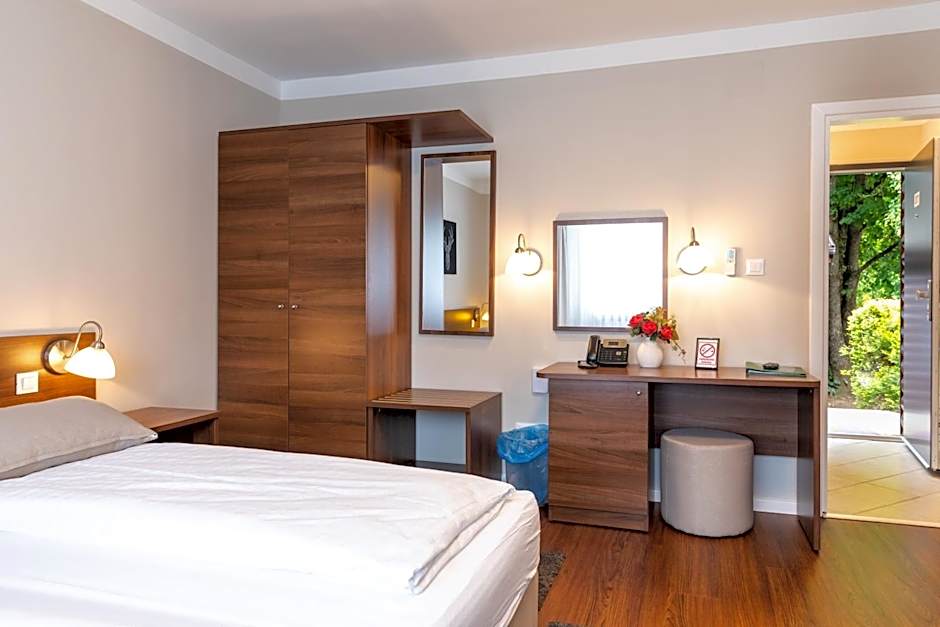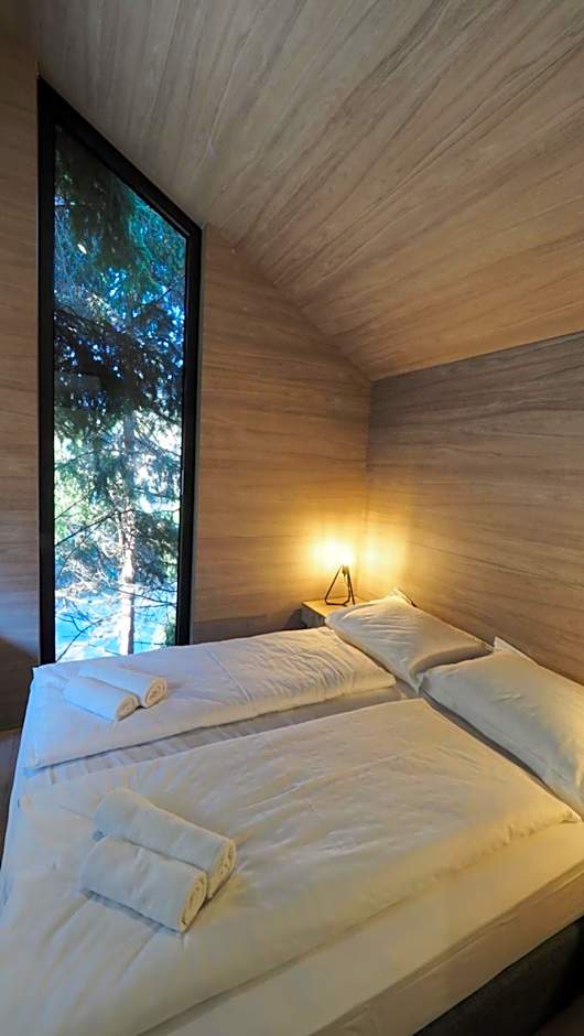 These rooms are located in main object "Jelena" and are surrounded by greenery and tall pine trees.