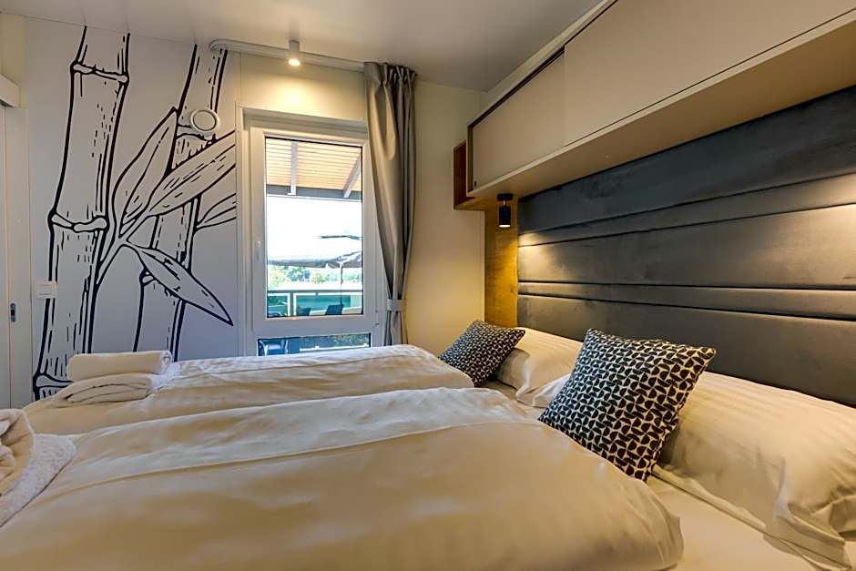 Newly furnished mobile home featuring a sun terrace and access to a swimming pool. It consists of 2 bedrooms, a living room and a kitchen. Private bathroom provides a shower. The mobile home is air-conditioned and offers satellite TV.